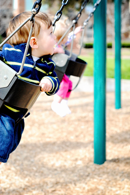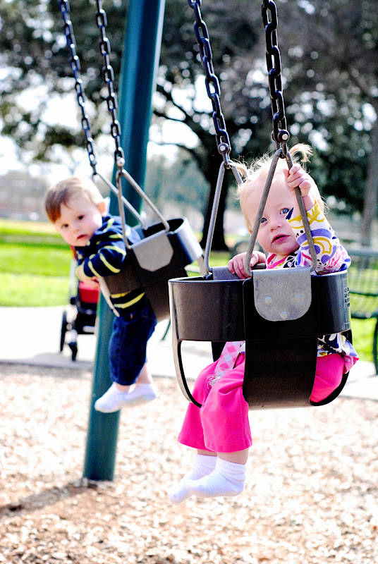 A few days ago we went to the park to swing. We do this multiple times a week because Grey just screams in delight when he is swinging + there is a park a few blocks away + the weather has been exceptional this winter in Dallas. I brought my camera along to capture photo's for a friend but ended up getting a little "snap happy" while the kids were swinging, eh what can I say, Grey is darn cute.